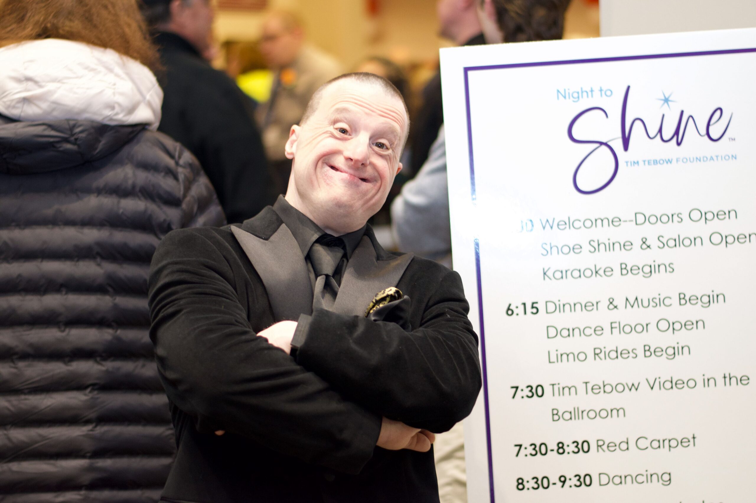 What can you expect at Night to Shine? The red carpet treatment, a friendly crowd and paparazzi, royal treatment, hair, make-up and shoe shining stations, limousine rides, corsages and boutonnieres, a catered sit-down dinner, photo booth, prom favors for each guest, a tiara or crown and of course dancing!